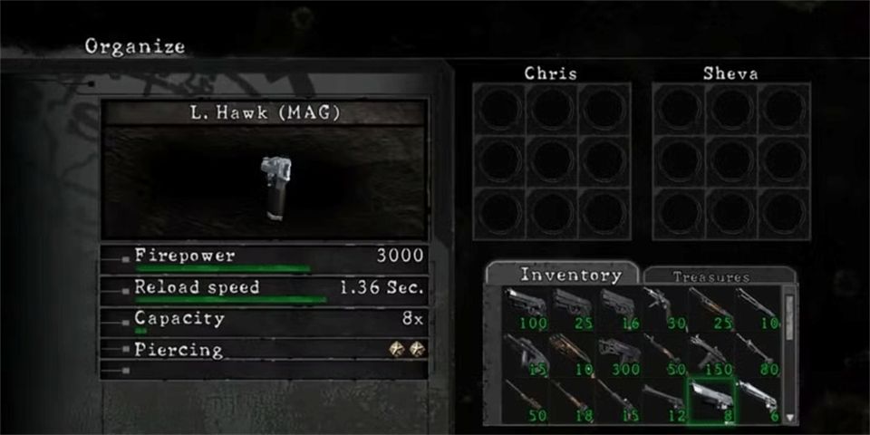 然而,这把武器也有一些缺点。其换弹速度为3.18秒,容量仅为六发,表现平平。而且,即使是克里斯那结实的手臂也无法阻止对这头野兽的疯狂后坐力。至少它的输出伤害弥补了速度不足。如果你想拿到这把武器,必须花30,000金币购买,而且只有在你完全升级S&W M29后才能获得。