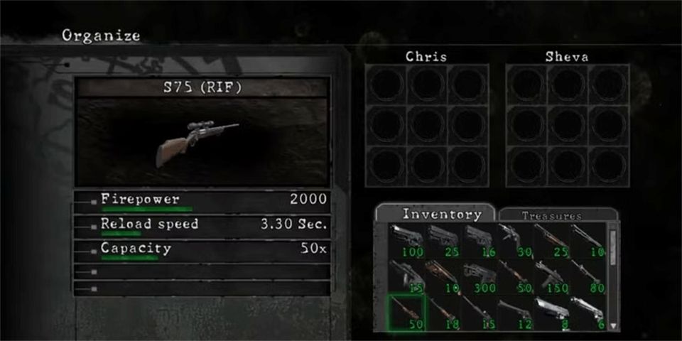 最近的《生化危机》重制版中有一些很棒的武器,但都没有狙击手。而《生化危机5》则包含了多种武器,其中S75是其中最优秀的之一。在第2-1章中,你可以在柯克空中支援的部分找到这把武器,装在一个金属盒里。它伤害为2000,装填时间为3.3秒,完全升级后弹药容量为50发。