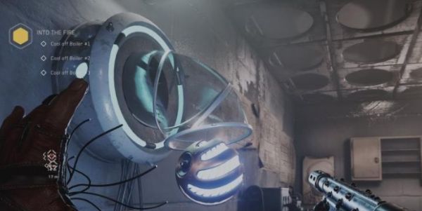 4、再回到刚才的房间,抓住小球,顺着管道把它带到锅炉那里,就能给锅炉降温了。一共有三个锅炉,按照上面步骤将给全部锅炉降温即可。