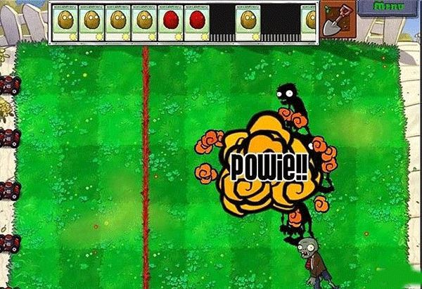 1、这是一个迷你游戏,上面给墙果,让你滚过去砸僵尸。跟打保龄球一样,连声效都是一样的。