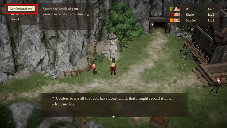 找到教堂后,进入,与祭 坛后方的NPC对话,然后选择忏悔(保存)选项。现在只需选择你想存档的冒险日志槽,等待确认完成。