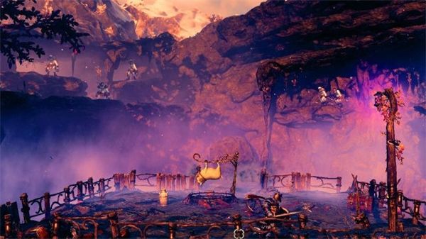 三位英雄将踏入一个充满神奇的童话世界,里面充满了各种谜题和危险的敌人。另外,该作的画面有大幅度提升,三个英雄无论是从建模还是美化都上了一个台阶,此外游戏场景也很华丽,无论是开阔的陆地还是幽暗的森林有很有看头。游戏虽延续横版卷轴的过关模式,但是会加入更多视角的场景过渡。