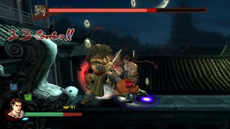 13.任意方向键(不按则默认前方)+JK齐按,需耗一格蓝色能量。如boss全身发红要出绝招时使用此招,则伤害加倍,普通技重拳或重脚也有此效果