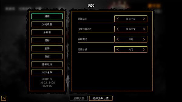 2、进入设置界面后,可在通用选项卡设置文本以及卡牌语音语言