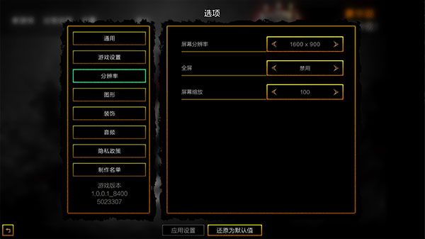 3、分辨率选项可切换是否以全屏显示,更改屏幕分辨率选项即可更改窗口大小