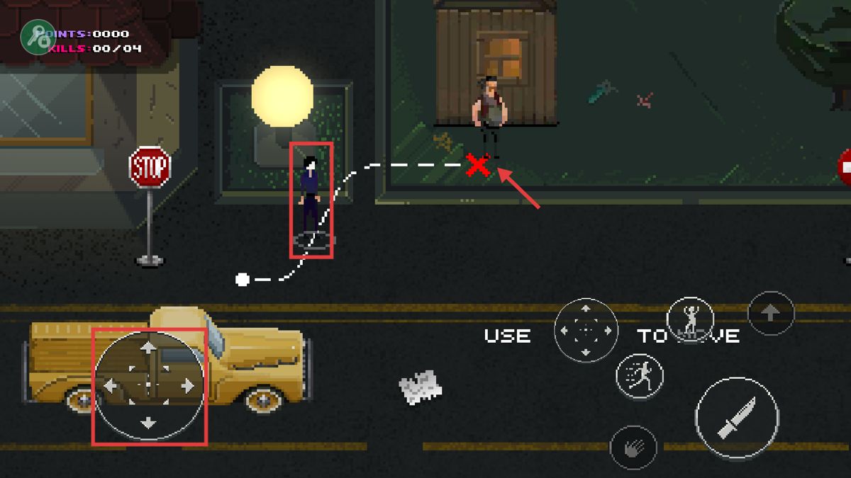 1、通过左侧轮盘操控角色移动,悄悄接近目标敌人,为完成【KILLS】的任务布局,别惊动旁人哦。