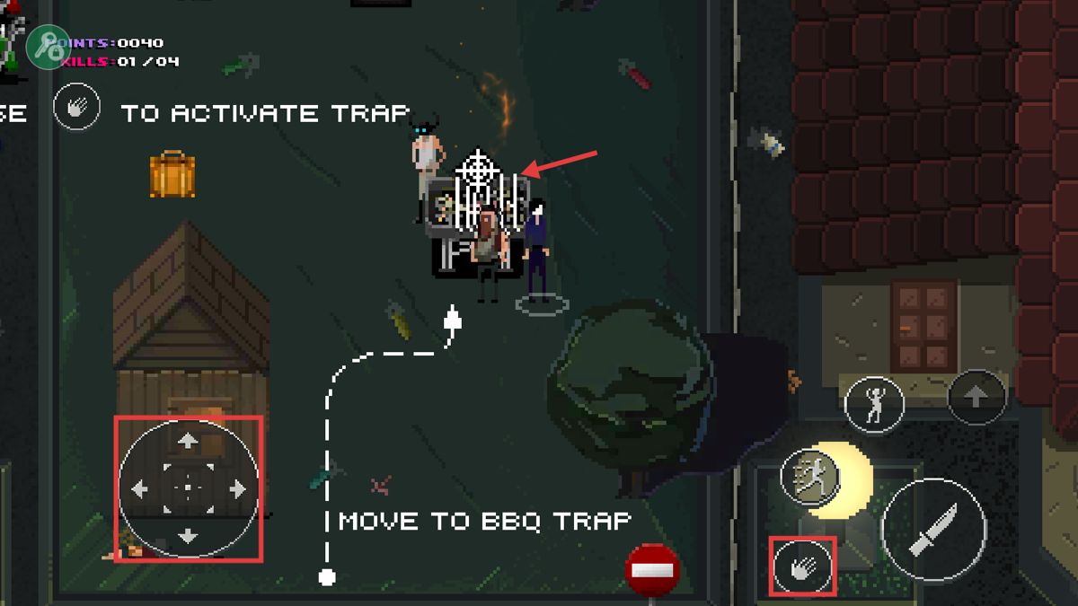 2、时机合适时,点击右侧【刀】图标,趁无人注意,快速击杀敌人,让【KILLS】计数更新,推进任务。