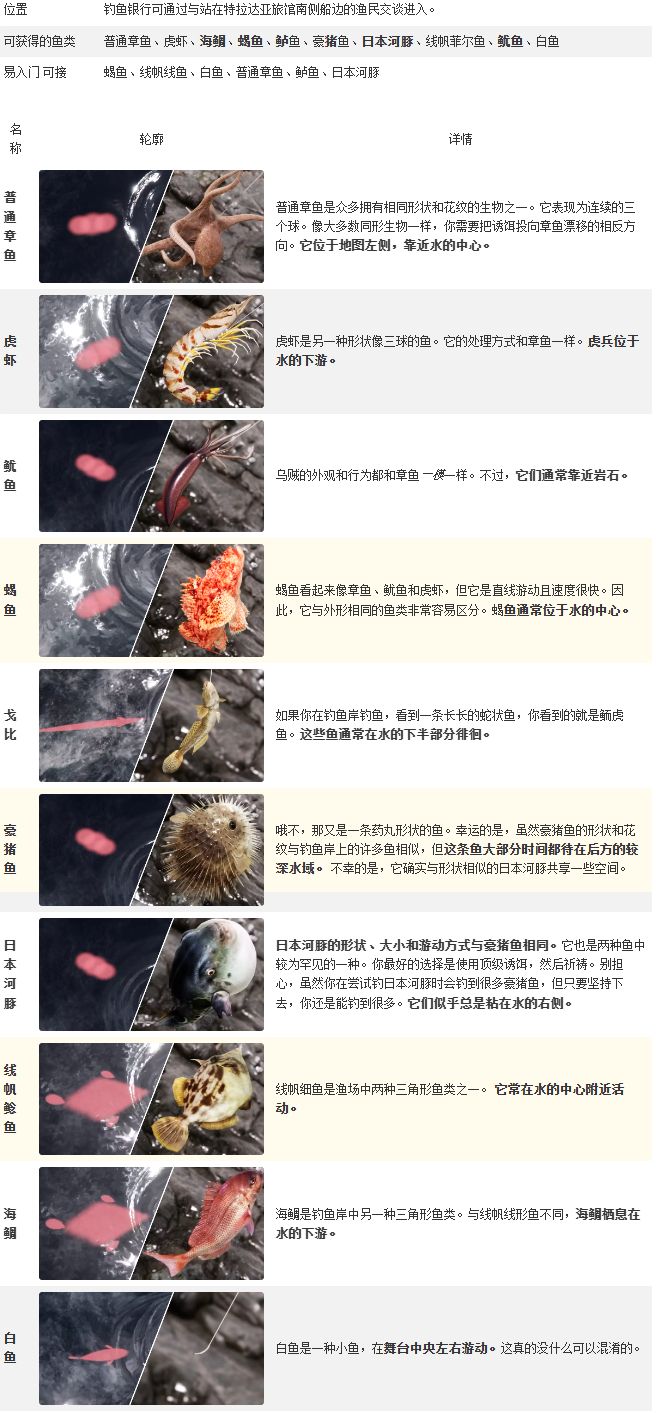 利用鱼的形状、大小、游动模式和位置,我们能够相当准确地定位每条鱼。 有些鱼类具有许多相似特征,但大多数情况下,你可以利用本指南中提供的数据,准确定位每条鱼,都不会太困难。