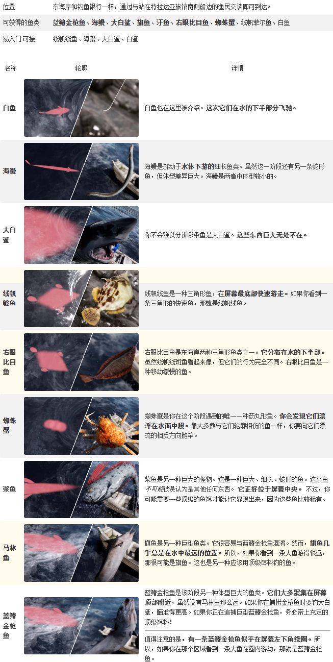如果你想在《另一个人生》部分完成所有目标,那就意味着要钓一条超过7尺的蓝鳍金枪鱼。至于方法 论,很难明确说最好的做法是什么。举例来说,有人声称巨型蓝鳍金枪鱼永远是你捕获的第一条,所以如果你的第一条捕获不是巨型蓝鳍金枪鱼,那么你应该离开东海岸再回来。虽然我们不知道这是否属实,但当我们钓到金枪鱼时,那是我们钓到的第一条金枪鱼。所以,我们可以说这是合理的。