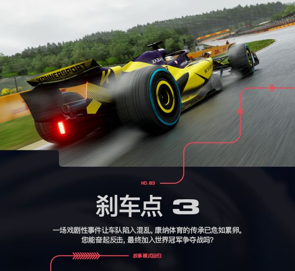 《刹车点》第三章延续车队恩怨主线,新增电影《F1》联动章节,玩家决策影响角色职业生涯走向。