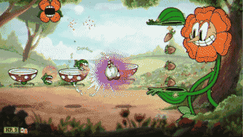 玩家控制茶杯头或马克杯人在横版关卡中进行射击和跳跃,躲避敌人的攻击并击败它们。