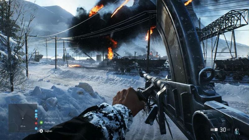 《战地5》以其大规模的多人战斗场景而闻名。玩家可以参与64人的战斗,与其他玩家组队进行对抗。