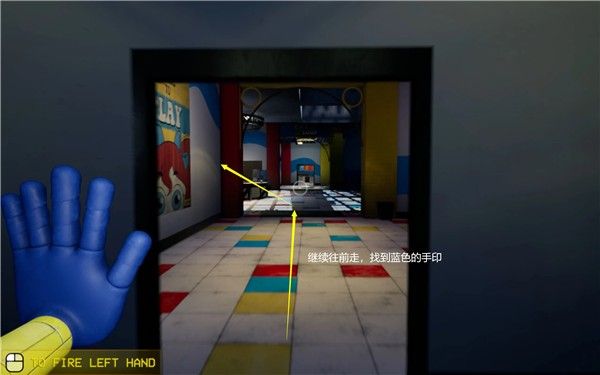 拿到蓝手后,回到起点的位置正对柜台的后面,可以进入下一个区域。