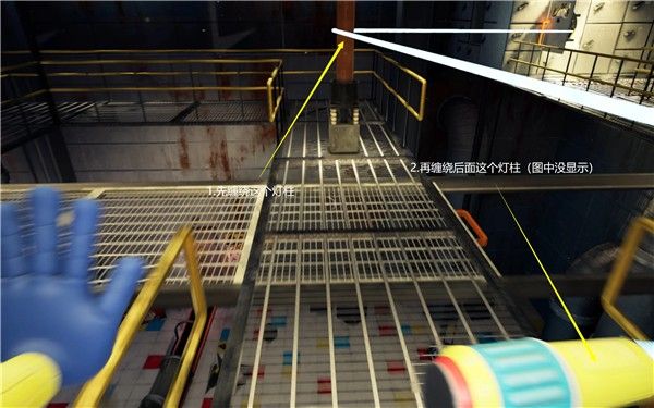 大门打开后,继续前进,之后就是追逐战。走到尽头HUGGY就回来追你,这个时候我们要回头逃跑。