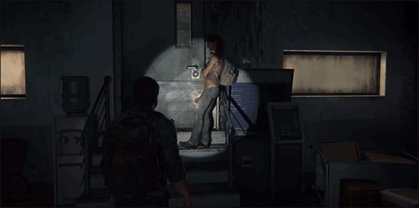 游戏一开始,“隔离区”章节,跟随泰丝,检查站发生战斗后进入建筑,帮泰丝拉开书架。