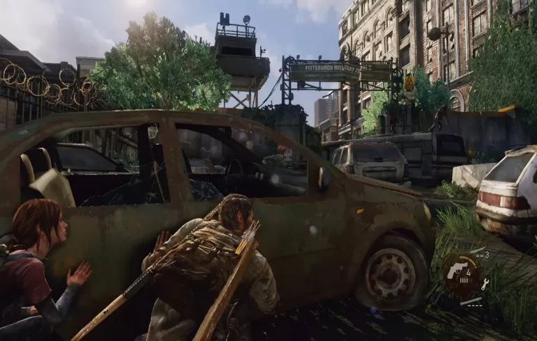 “匹兹堡-孤独废弃”章节一开始,遭遇敌人伏击车辆撞毁,解决敌人后从旁边卷帘门离开。