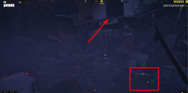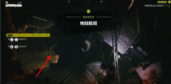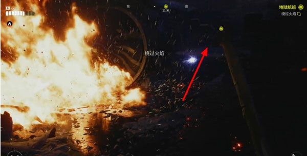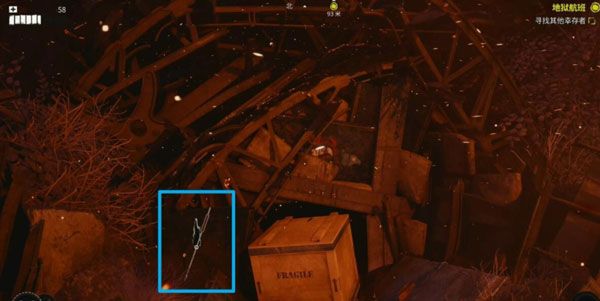 11、按十字键上打开手电筒后深入飞机残骸,来到下图所示位置时按下右摇杆使用踢击踢飞挡路的杂物。