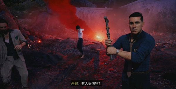 13、沿着小路继续前进,来到飞机残骸打开舱门后找到三名幸存者,从左到右依次为【罗尼】、【艾玛】和【麦克】。