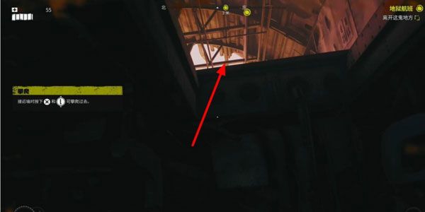 5、继续在机舱中前进,在前方按X键爬至上层。