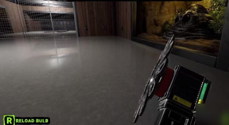 5、当怪物追来时,我们可以蓄力后开枪将其打晕。同时,通过右键可以开启夜视仪模式,查看怪物和获取引导。这样,我们就可以在动物园中寻找钥匙,解救动物园,战胜外星人的入侵。