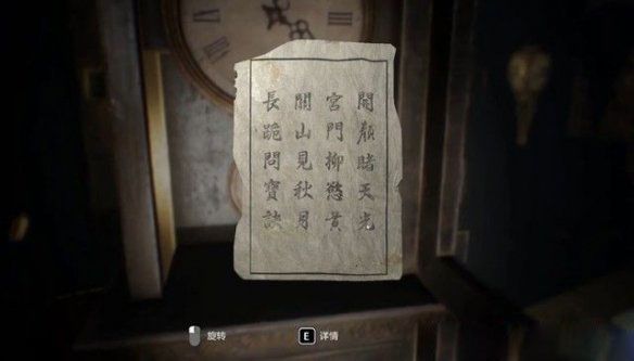 ④、另一个收藏台上面有个钟,里面有诗文,拾取。