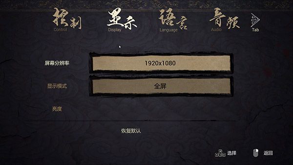 3、显示设置中我们可以更改游戏的亮度、显示模式以及分辨率;