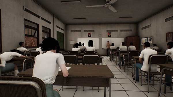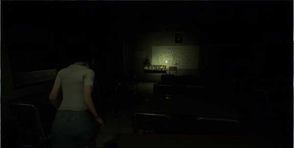 当琳达睁开眼的时候,发现自己身处一个诡异的地方,还是在教室里,不过,这里只有琳达一人,而且墙壁上,地上到处都是血迹。出教室之后,下楼,然后通过走廊之后,再上楼,找到开着灯的教室。