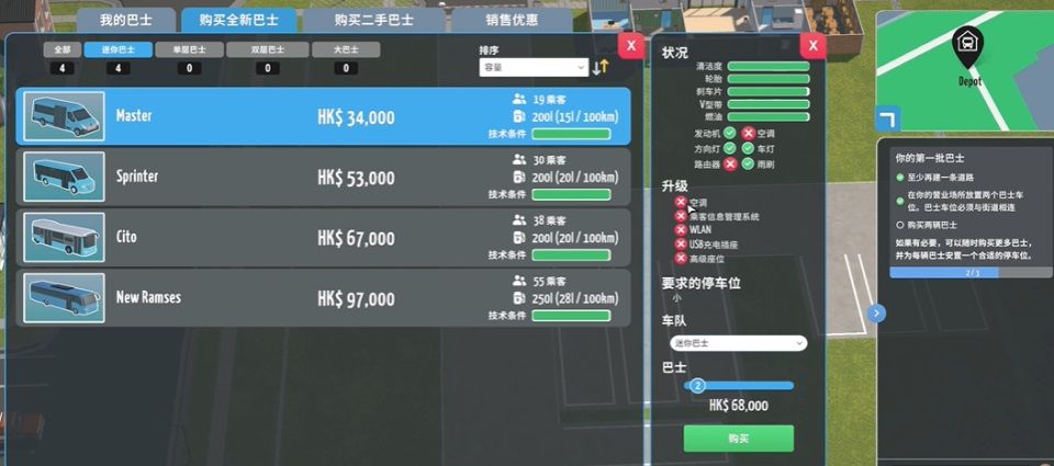 1、首先玩家需要购买新巴士;