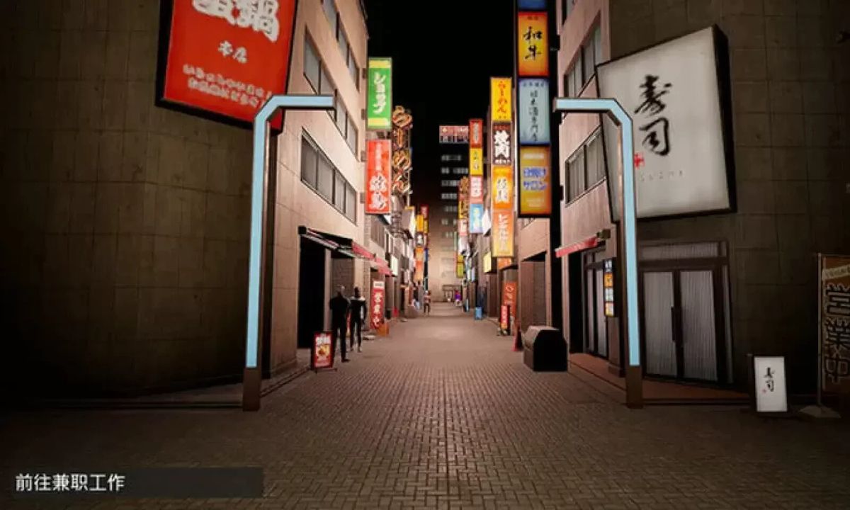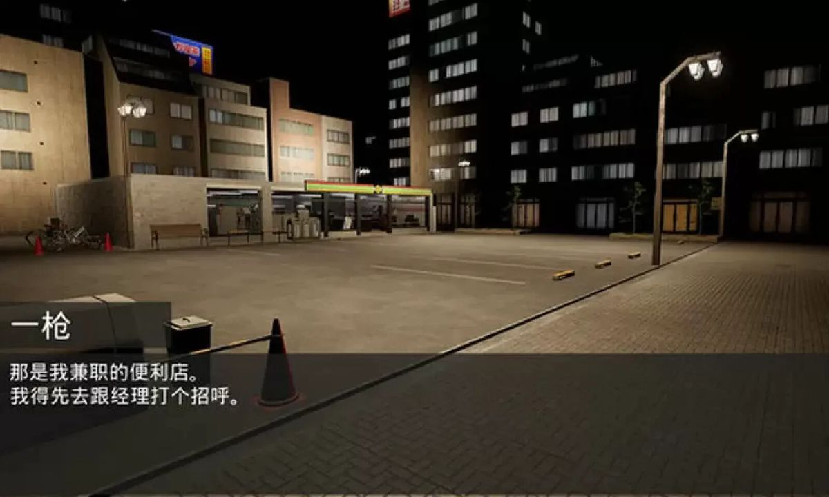 便利店内部布局逼真,从饮料冷藏柜到收银台均高度还原现实细节,搭配动态天气系统(如夜间灯光效果),营造真实与奇幻交织的视觉体验。
