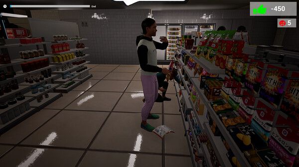 第一人称视角强化了收银台前的紧张感,3D建模的便利店场景细节丰富,如货架商品纹理、动态光影等,增强代入感。
