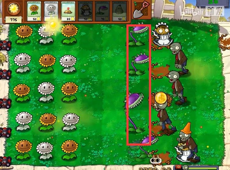 4、在后方种植自己的植物炮台,从而给予远程的火力支援。
