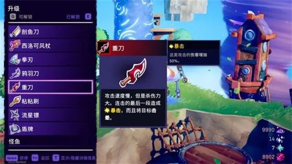 装备至多2种武器并使用武器对应的游戏风格来施放威力无穷的隐藏攻击方式。随机应变,在飞跃途中使用形形色色的被动馈赠、强力饰品以及可掉落怪鱼(?!)来克服重重难关。”