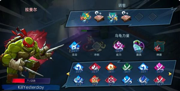 玩家可以选择四个忍者神龟中的任意一个,每个忍者神龟都有独特的技能和特点。