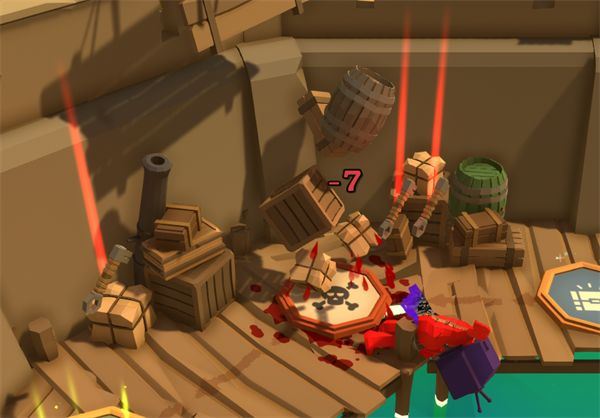 支持1-8名玩家在线或本地对战,玩家可以使用各种武器和道具在危险的地形中互相攻击。
