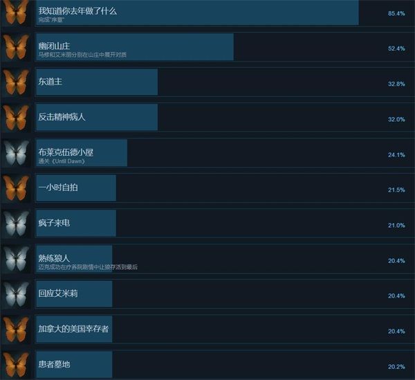 已收集《Until Dawn》中全部金、银和铜成就