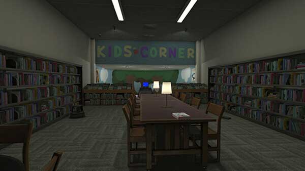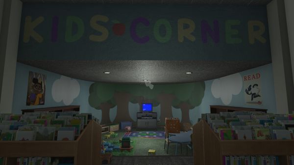 肯斯代尔公共图书馆:作为新的主要探索区域,图书馆提供了一个比凯特姨妈家更大的探索空间。