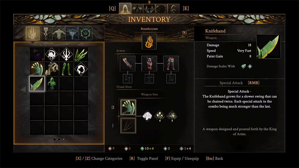 此外,它的特殊攻击是蓄力前冲刺穿透敌人,可以用来穿透敌人,躲避攻击。这把基于敏捷的武器特殊攻击造成的伤害非常惊人。而且投掷匕首也不错,是早期敏捷流的不错选择。