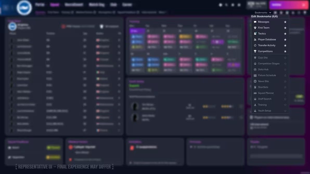 无论你专注于培养神童、战术革新,还是称霸转会市场,都可以通过收藏夹定制属于你的管理世界。