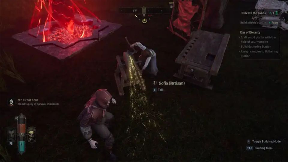 除此之外,你应该给剩下的吸血鬼分配不同的角色。虽然你可以自己处理遗迹,但这可能需要大量时间,所以让吸血鬼来做这件事通常是更好的选择。你还应该确保分配任务,比如收集木材、粘土和沙子,这样他们就能顺利制作不同的物品。