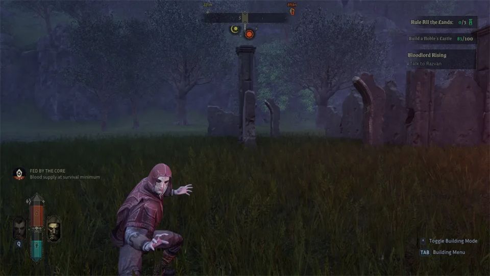 当你血液不足时,这对你帮助很大,因为你不必在附近奔跑寻找动物。你可以简单地使用这个能力,如果周围没有动物,就回到城堡山丘,然后猎杀那些动物。之后你还能解锁其他能力,比如狂怒视野和无拘视力。