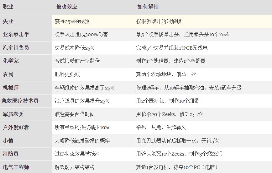 通过职业、负面状态与技能树系统打造你的幸存者。然后为他装备大量武器与装备,决定你将如何挺过这场末日。