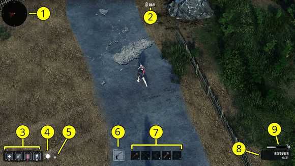 8、当前配备的物品状态-显示您目前配备的武器或工具。如果那个物品是一把枪,它会告诉你你还剩下多少弹药。