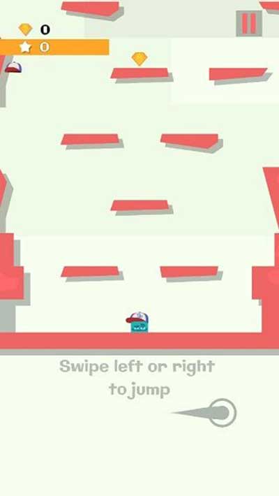1、游戏支持点击与滑动两种操作模式,目标都是实现精准快速跳跃。点击操作通过触击屏幕左右区域控制跳跃方向,每次跳跃上升一个层级;滑动操作则通过左右滑动手势实现转向跳跃,实际操作中滑动方式更为流畅顺手。
