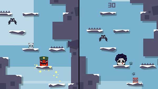 1、视觉风格简约明快,采用高对比度色彩区分平台层级,动态模糊效果增强速度感,角色翻滚动作流畅自然,失败特效幽默却不令人沮丧。