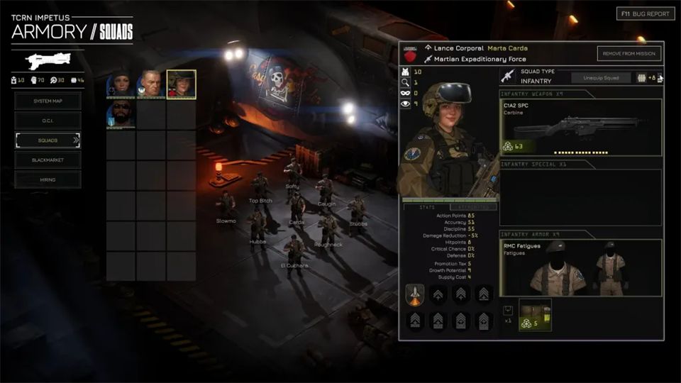 《威赫战线/MENACE》中的每个任务都受补给点限制。小队长通过部署成本和装备对这个上限有贡献。