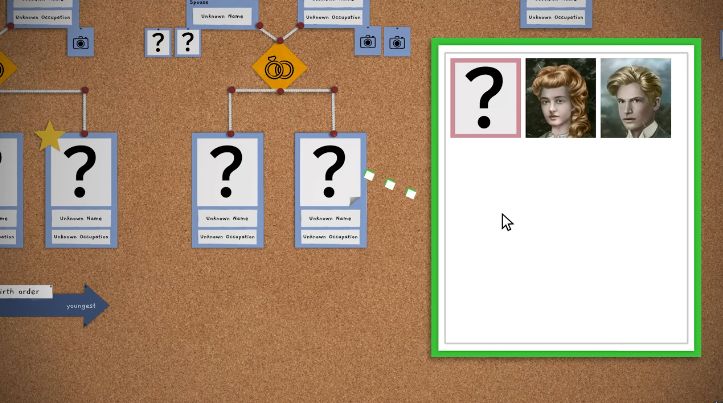 仅凭借你的强力工具——拨号调制解调器的力量,你将搜寻照片、书籍、文章和其他证据。然后根据发现的亲属关系进行关联推理。每在家族树上正确填入一个位置,你手中剩余的名字和照片可放置的位置就越少——但证据也会愈发难以寻找且会更加隐晦。