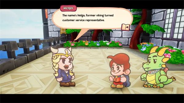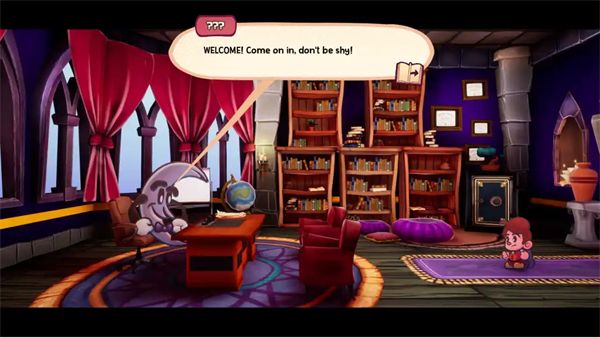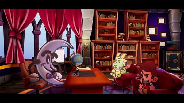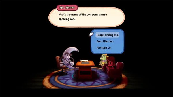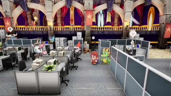 游戏采用2D卡通渲染风格,场景设计融合童话书的手绘元素与现代办公室符号(如城堡中的咖啡机与报表),色彩鲜明且富有视觉层次。角色动作设计突出夸张的戏剧性,战斗特效简洁流畅,契合回合制的节奏感;场景转换则通过翻动“故事书页面”的动画实现,强化了叙事载体特色。