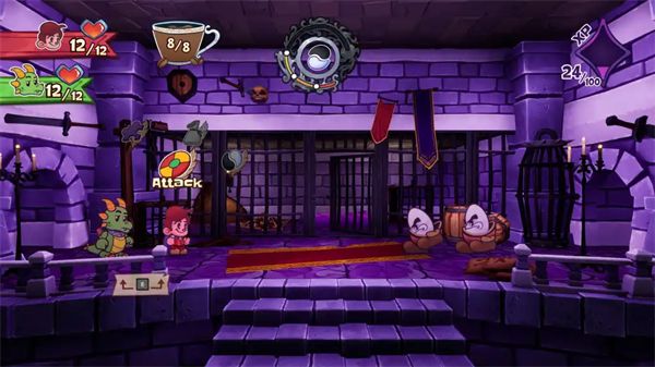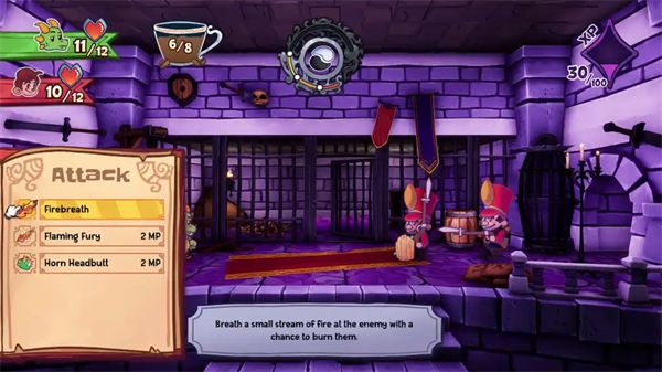 当门打开时,当然,借助巨龙的强大力量,会出现两个敌人,引发另一场战斗。在这场战斗中,你还能使用第二个技能,需要MP值。摩卡点数有限,用于特殊攻击,所以你必须小心使用。