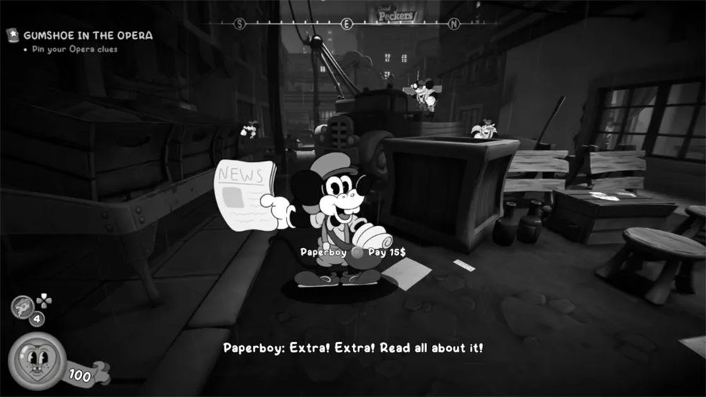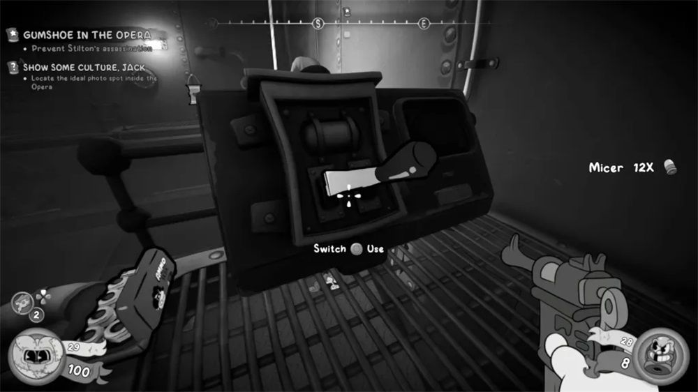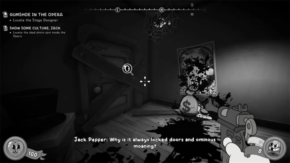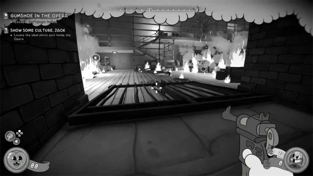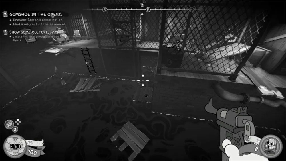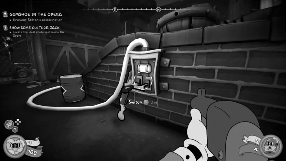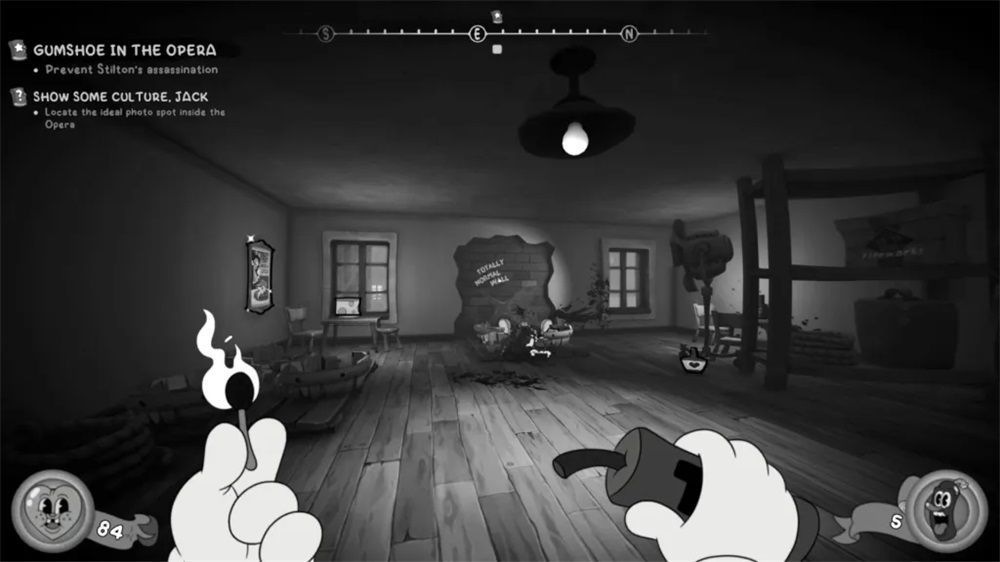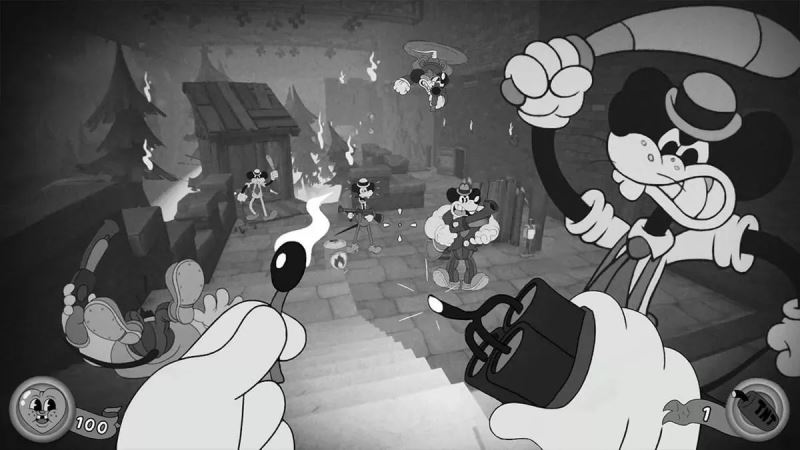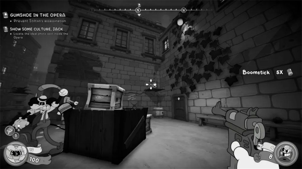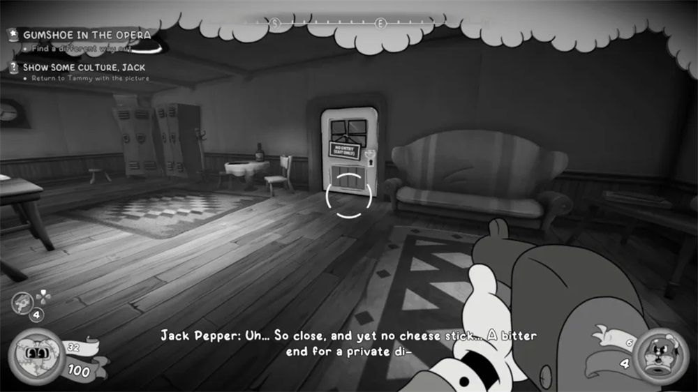 神探杰克鼠2026最新版(MOUSE:P.I.ForHire)是一款融合了橡皮管动画风格的第一人称射击游戏,玩家将与私家 侦探杰克·佩珀一起深入腐败的鼠城,揭开层层谜团、探寻真相。融合快节奏第一人称射击与侦探解谜特色,玩家既要在枪林弹雨中灵活移动、利用特色武器与强化道具横扫敌人,也要细心搜集线索、分析证据,在战斗与推理中找到真相。游戏设计了20余个黑色的电影风格关卡,场景涵盖阴暗街道、电影制片厂、歌剧院等,玩家在各场景中搜集到的线索会在线索墙上自动关联,形成完整的证据链,帮助玩家破解阴谋。游戏的战斗的过程也进行了卡通化表现,敌人被击中会夸张地扭曲、拉伸、弹跳,头部中枪会炸开一团墨水,身体中枪会出现卡通弹孔,不同武器具有不同死亡效果。