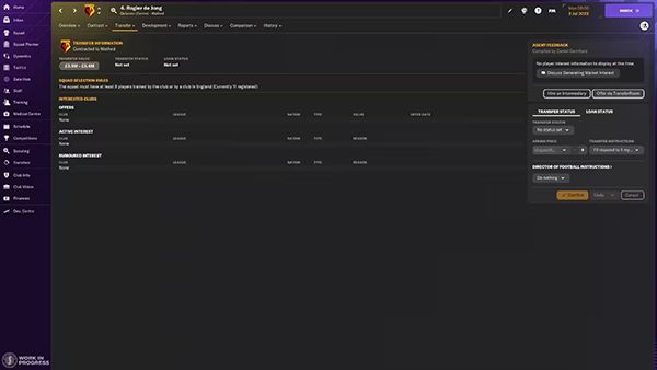与《足球经理》中的其他系统和功能一样,我们与足球行业的专业人士合作,以更好地了解职业俱乐部如何处理出售球员的问题,并将我们的洞察应用于游戏中。
